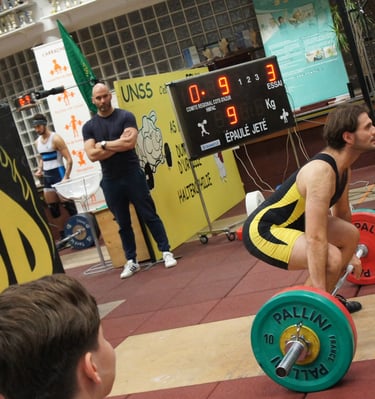 Beaucoup d'athlètes de niveau débutant à national en haltérophilie sont suivis par Sébastien.